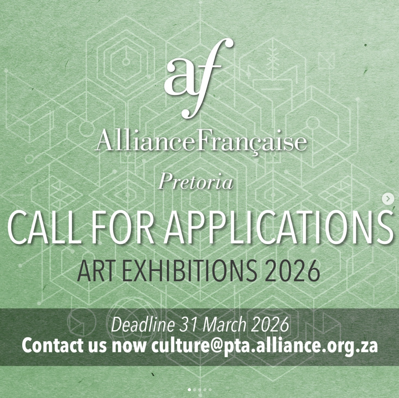 The Alliance Française de Pretoria is pleased to invite visual artists to apply for our 2026 exhibitions. We are committed to showcasing thought-provoking, innovative, and inspiring work from both emerging and established artists. This open call welcomes all visual art mediums — including painting, sculpture, photography, digital art, illustration, installation, and mixed media.Apply Online: hereDate: Deadline: 31 March 2026