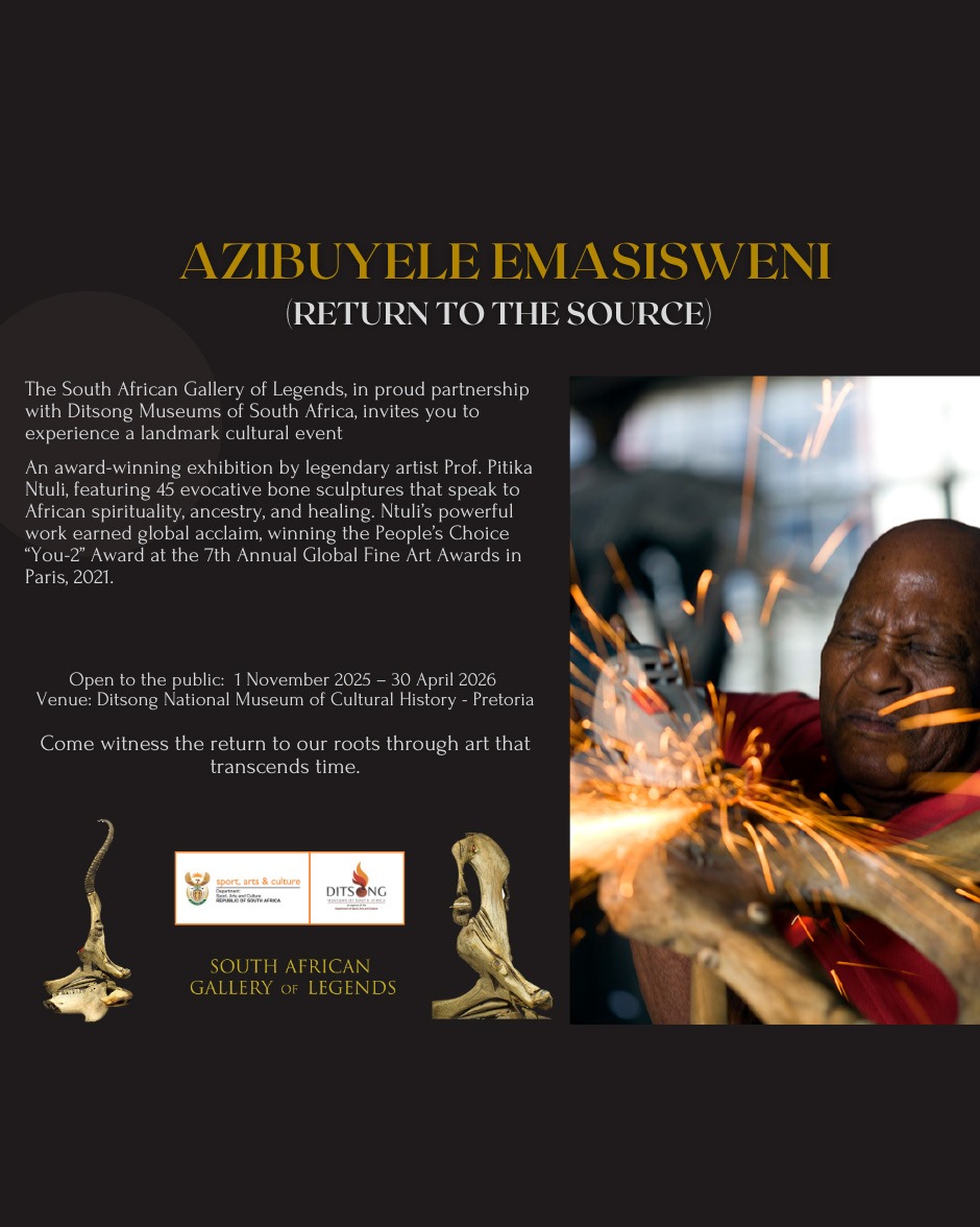 The South African Gallery of Legends, in proud partnership with Ditsong Museums of South Africa, invites you to experience a landmark cultural event. An award-winning exhibition by legendary artist Prof. Pitika Ntuli, featuring 45 evocative bone sculptures that speak to African spirituality, ancestry, and healing.Date: 1 November 2025 - 30 April 2026