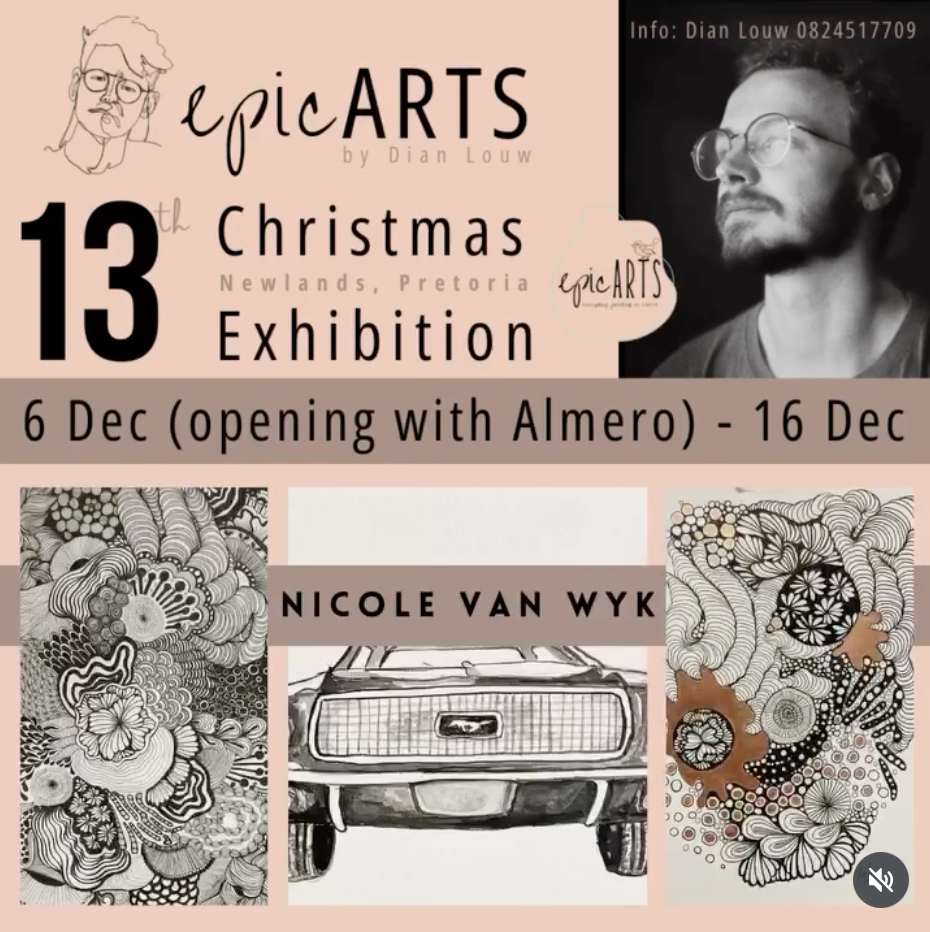 It's an honour to invite you to our 13th epicARTS Christmas Exhibition '25! Dian Louw will showcase his work alongside 20 other super talented Gauteng-based artists!Date: 6 December 2025 - 16 December 2025